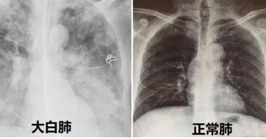 具體來說,當這種白色覆蓋至少一半的肺(也有說法認為白色面積達到70%~80%時),就被稱為「白肺」。這種現象通常意味著肺部已經遭受了嚴重的損傷,影響了氣體的正常交換功能,進而可能導致呼吸困難、缺氧等嚴重后果。