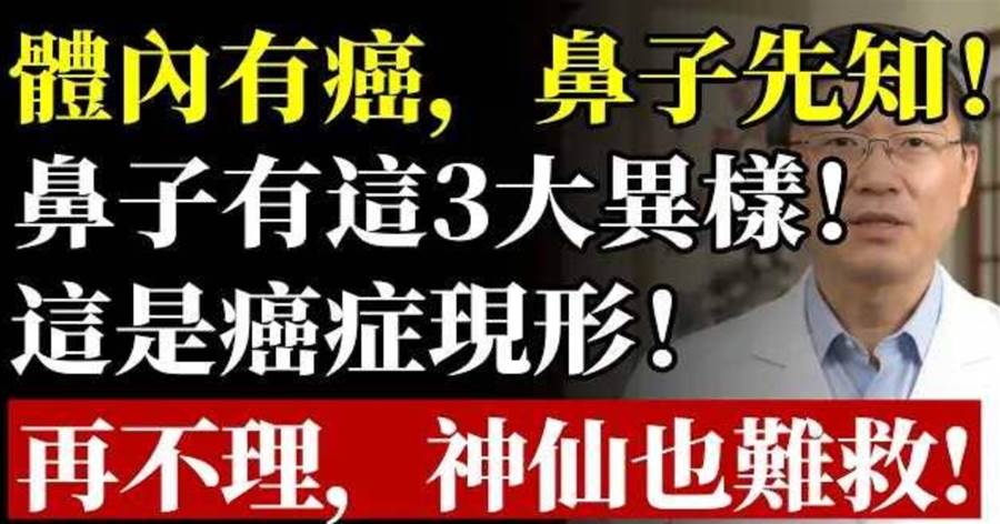 然而,鼻子卻是我們身體裡最敏感、最忠誠的健康哨兵,它能提前向我們發出警訊!這可不是危言聳聽哦。
