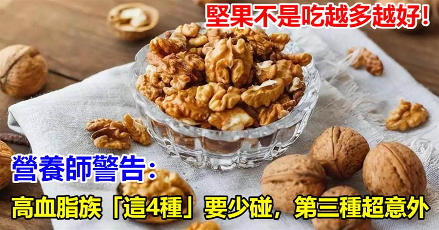 說到血脂高,不少人第一反應就是「那就少吃油、少吃肉」,但很多人不知道,血脂高了,連平時吃得非常健康的堅果也得小心了。